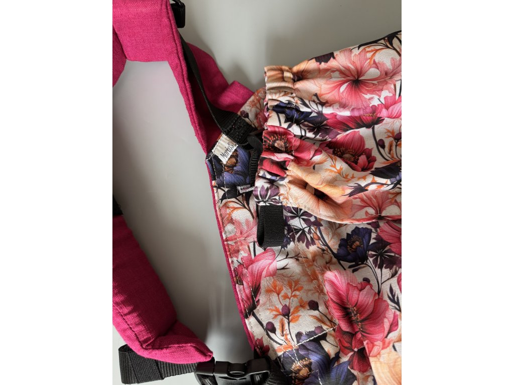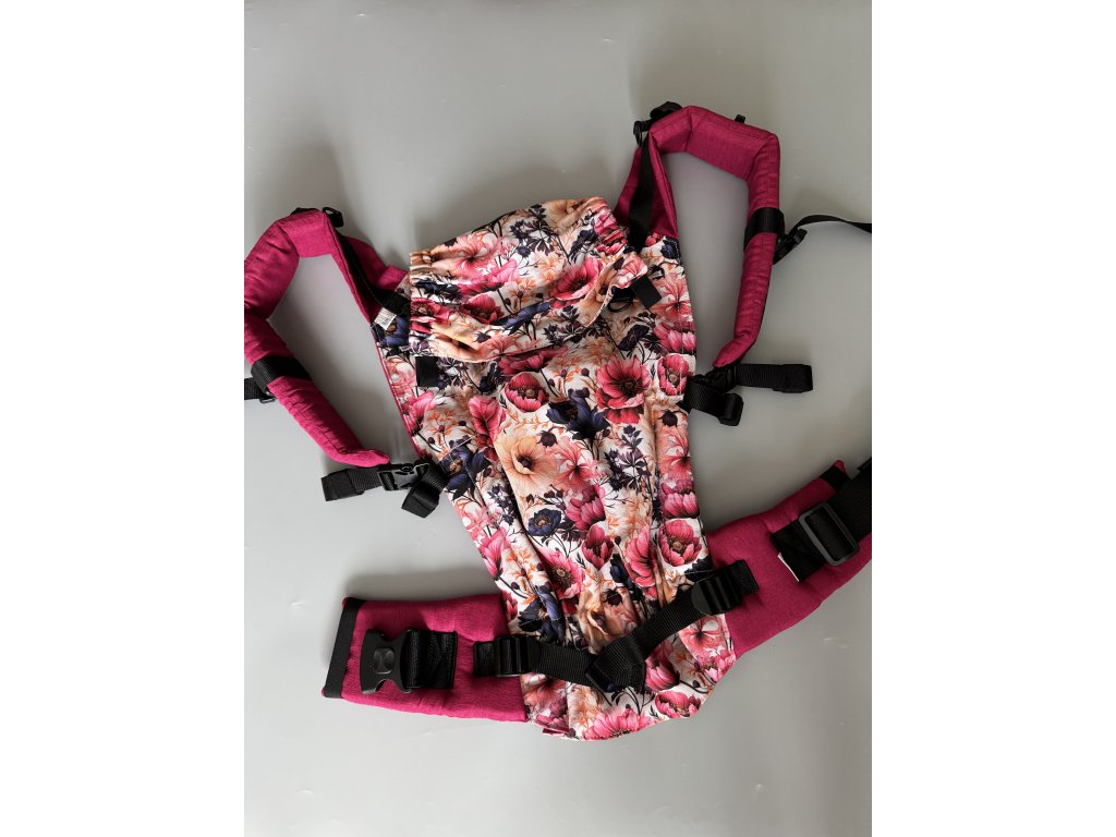 Na nosítku najdete bezpečnostní gumu na bederním pase, nosítko lze na zádech křížit a má oboustranně utahovatelné spony. Nosit můžete ve předu i na zádech.