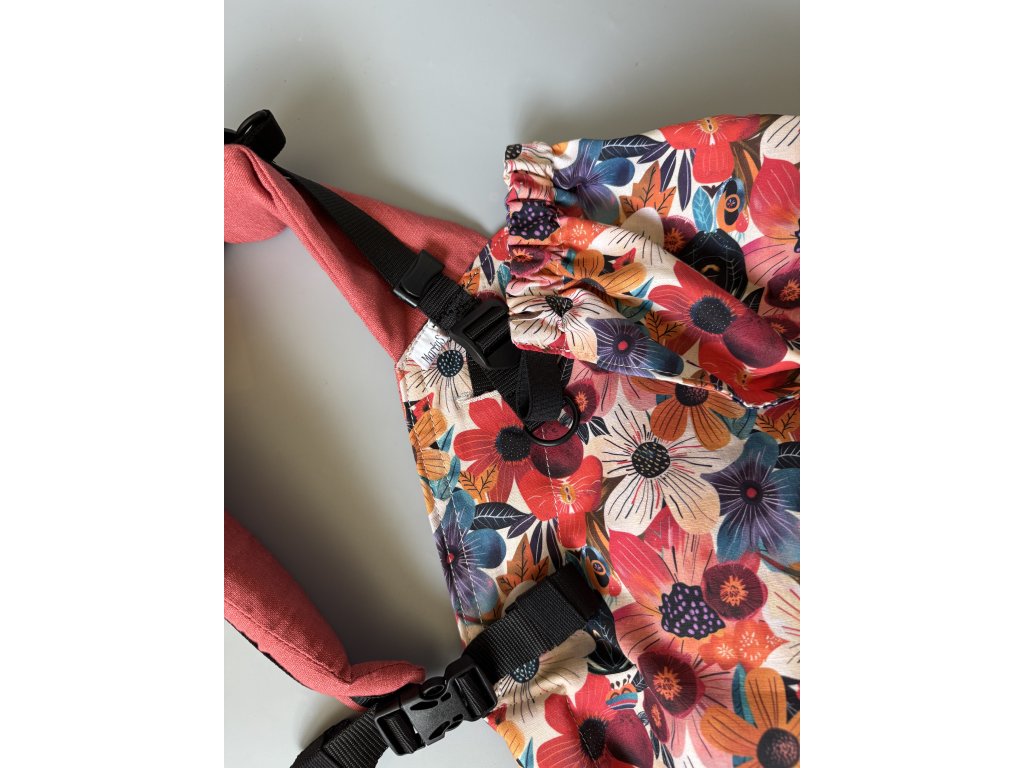Na nosítku najdete bezpečnostní sponu na bederním pase, nosítko lze na zádech křížit a má oboustranně utahovatelné spony. Nosit můžete ve předu i na zádech.