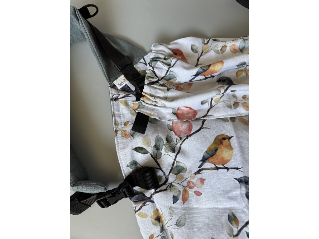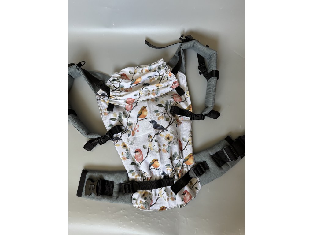 Na nosítku najdete bezpečnostní gumu na bederním pase, nosítko lze na zádech křížit a má oboustranně utahovatelné spony. Nosit můžete ve předu i na zádech.