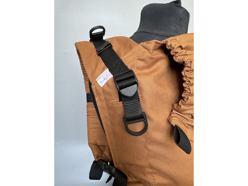 Na nosítku najdete bezpečnostní sponu na bederním pase, nosítko lze na zádech křížit a má oboustranně utahovatelné spony. Nosit můžete ve předu i na zádech.