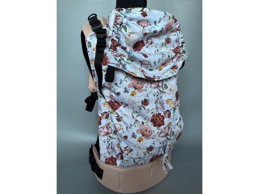 Na nosítku najdete bezpečnostní sponu na bederním pase, nosítko lze na zádech křížit a má oboustranně utahovatelné spony. Nosit můžete ve předu i na zádech.