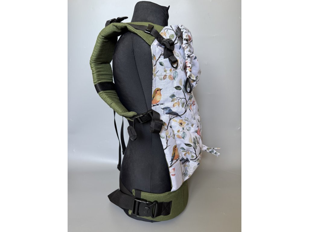 Na nosítku najdete bezpečnostní gumičku na bederním pase, nosítko lze na zádech křížit a má oboustranně utahovatelné spony. Nosit můžete ve předu i na zádech.