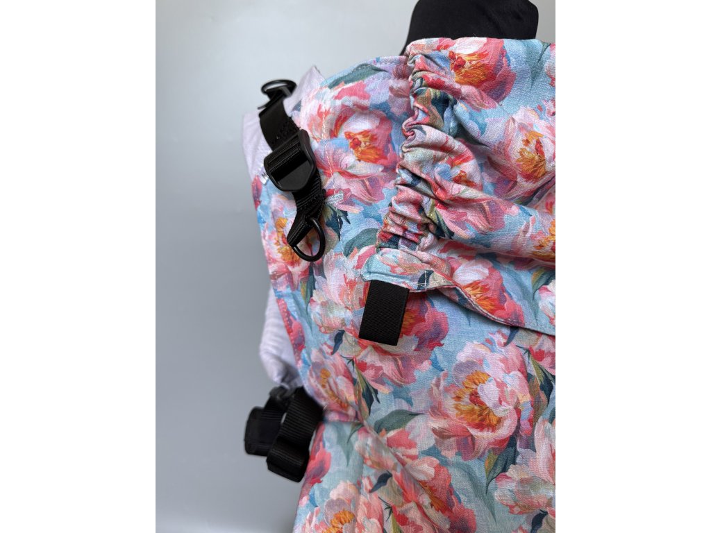 Na nosítku najdete bezpečnostní gumičku na bederním pase, nosítko lze na zádech křížit a má oboustranně utahovatelné spony. Nosit můžete ve předu i na zádech.