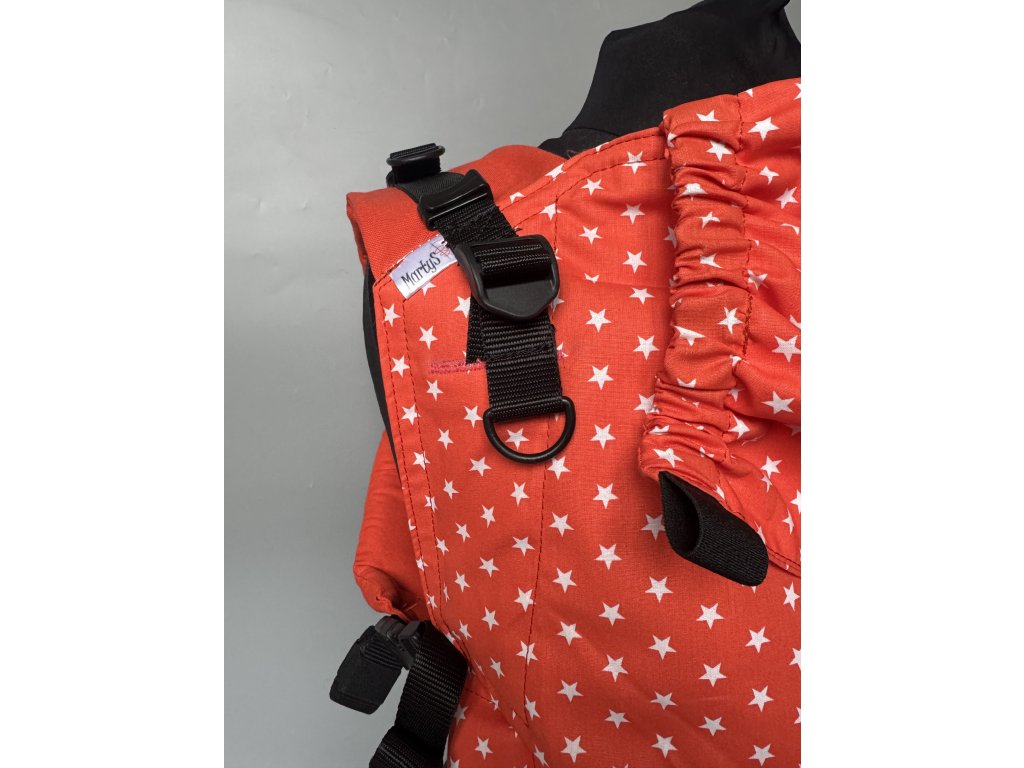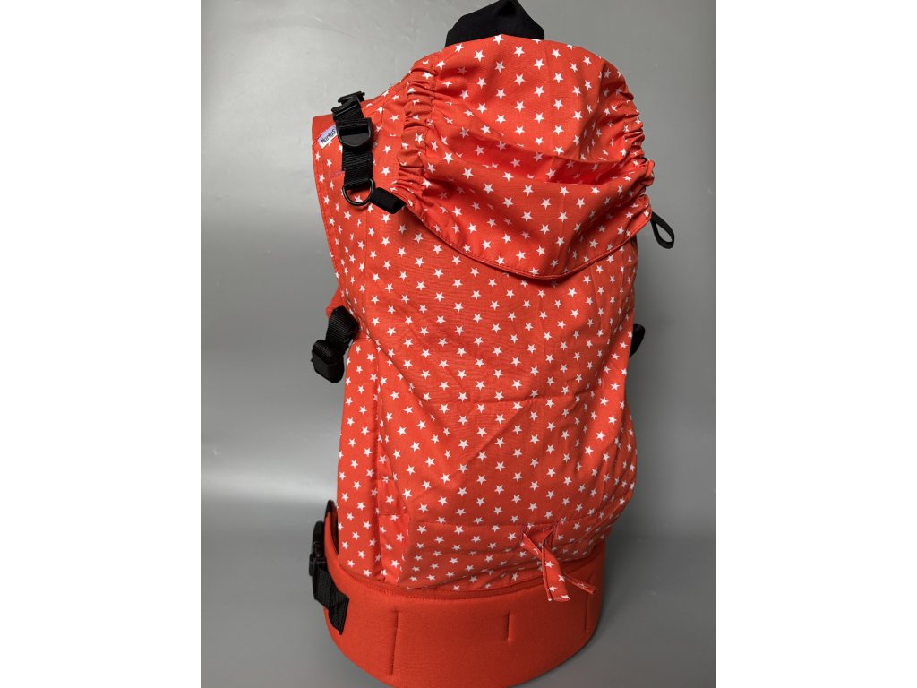 Na nosítku najdete bezpečnostní sponu na bederním pase, nosítko lze na zádech křížit a má oboustranně utahovatelné spony. Nosit můžete ve předu i na zádech.