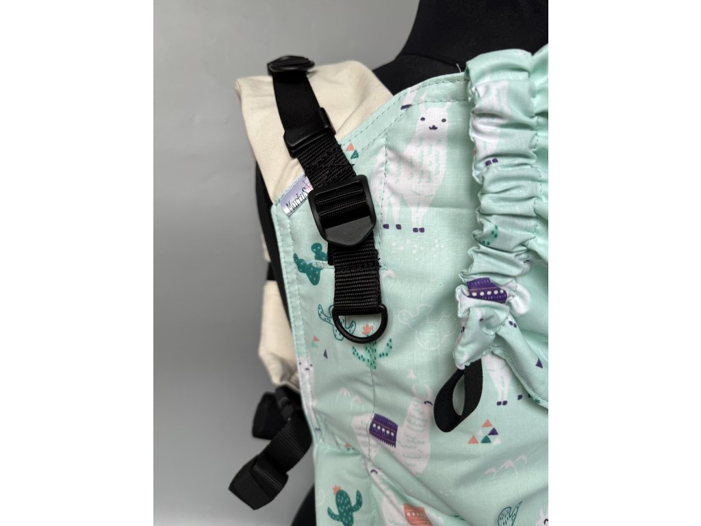 Na nosítku najdete bezpečnostní sponu na bederním pase, nosítko lze na zádech křížit a má oboustranně utahovatelné spony. Nosit můžete ve předu i na zádech.