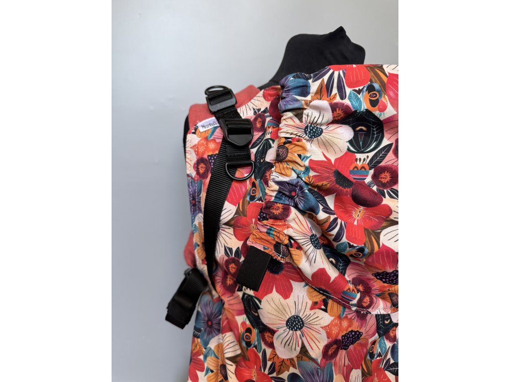 Na nosítku najdete bezpečnostní gumičku na bederním pase, nosítko lze na zádech křížit a má oboustranně utahovatelné spony. Nosit můžete ve předu i na zádech.